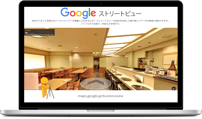 Googleストリートビュー認定プログラムにより認定を受けたプロの写真家が、あなたのお店の360°パノラマ写真を撮影し、ハイクオリティかつ魅力的なパノラマ写真で、あなたのお店を紹介します。