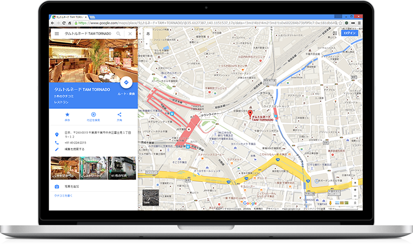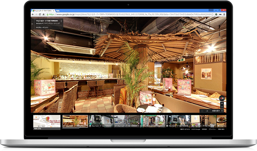 Google ストリートビューを通じ、実際に店内に来店したようなバーチャル体験をインターネットユーザーにアピールできます。